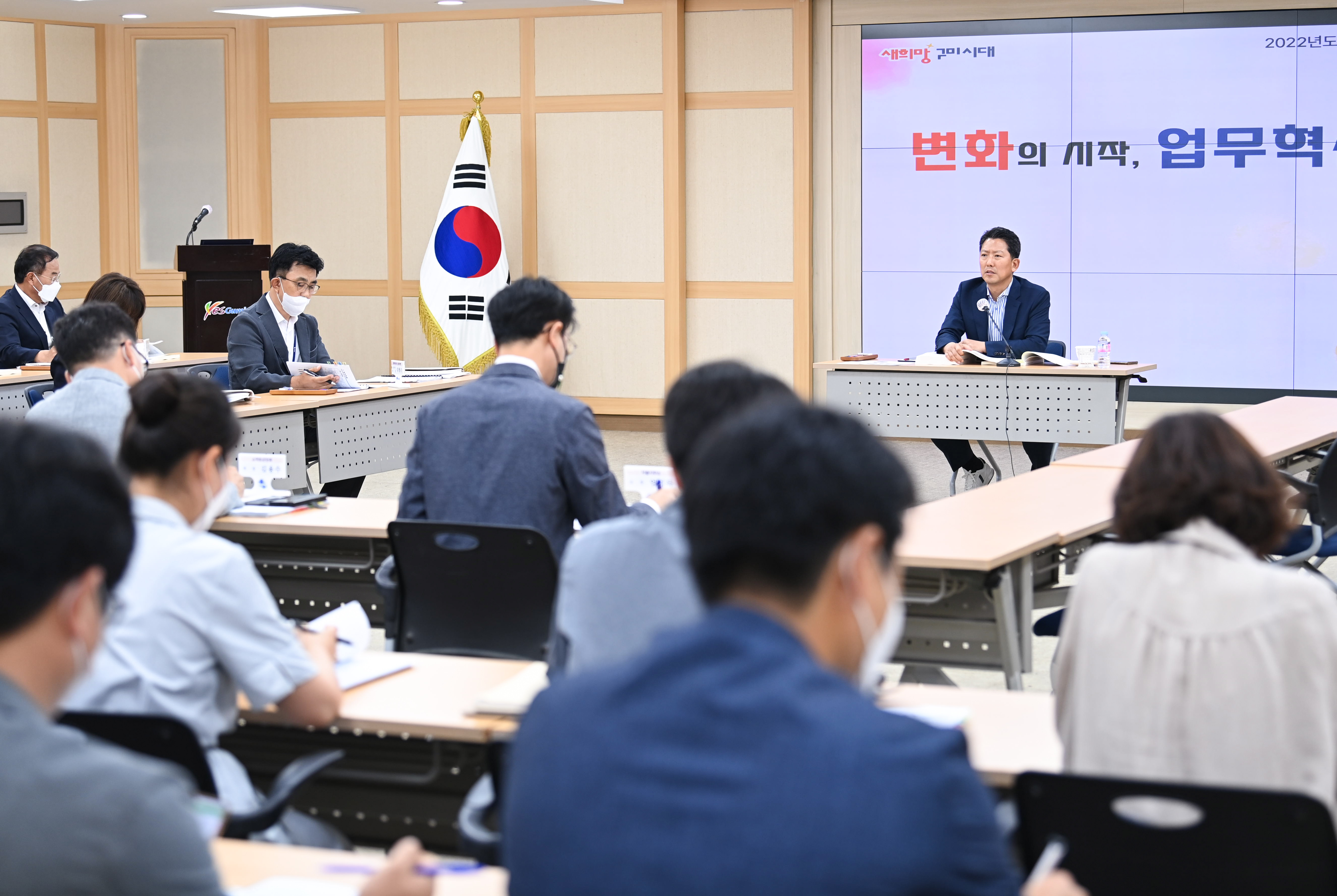 부서별 주요현안과 추진대책 등 500여건을 보고 받고, 민선8기 공약사업 등을 원활히 추진하기 위해 시정목표를 공유하며 사업별 부서 의견을 논의하는 시간을 가졌다.